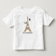 Personalize essas camisetas infantis minimalistas chic de férias em Paris para o seu reencontro familiar ou viagem de garotas. Um desenho artístico da torre Eiffel com um avião voando atrás para simbolizar sua viagem de avião. Linda escrita cursiva personalizada.