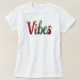 Esta animada design apresenta a palavra "Vibes" em uma escrita lúdica, fluindo com cores de Natal e sotaques festivos como Papais noeis em miniatura e flocos de neve, criando um toque perfeito de alegria de férias para suas t-shirts.