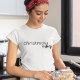 Simples, de moda, as "vibrações de natal" na moda citam as mulheres como camiseta na tipografia moderna minimalista em preto. A tendência perfeita de moda para a estação festiva!