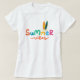 Vestes de verão e pranchas de surfe, camiseta feminina design que é perfeita para ajudá-lo a entrar naquele modo de férias bonito. Este design colorido apresenta letras de cores vibrantes e uma ilustração de pranchas de surf e vibrações na caligrafia de na moda.