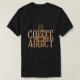 Esta imagem mostra uma camiseta preta com um design centrado no café. É apresentada uma xícara de café marrom estilizada com vapor, acompanhada do texto "COFFEE ADDICT". O design é simples e ousado, claramente direcionando os entusiastas do café. A estética global é limpa e moderna, adequada para visto casual.