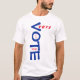 Camiseta VOTA! Não se esqueça de votar nos EUA! Esta camisa tem várias versões da palavra VOTE em azul e vermelho.
