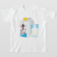 Um copo de leite ao lado de uma caixa de leite com uma imagem de vaca. Esta design parece muito eficaz nesta Camiseta de Meninas