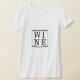 .Esta t-shirt apresenta a palavra empilhada "vinho" incluída num quadro quadrado com texto escrito: "amante". Essa camiseta atraente tem um estilo contemporâneo e minimalista e é o presente perfeito para aniversários, Dias de as mães, Dias de os pais, empregadas de noiva, festas de solteira e muito mais.