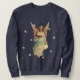 Um anjo vintage segurando um livro vermelho e carregando um pergaminho, cercado por um padrão aleatório de estrelas, faz um lindo doce de Natal.