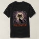 Este vintage Dia das Bruxas apresenta um gato preto assustador com olhos verdes brilhantes em frente a uma lua de cheio brilhante. A cena sombria é enquadrada por árvores sem folhas e espirais ao estilo vitoriano, dando-lhe uma vibração assombrada clássica. A paleta de cor laranja e preta muda para o retrô do Halloween, fazer esse design perfeito para aqueles que amam as imagens tradicionais do Halloween.