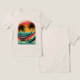 Entre no estilo do eterno com esta camiseta retrô vintage, com um design captivador que o transporta para um paraíso tropical sereno. A t-shirt ostenta bandas num círculo imitando uma aparência de pôr do sol, as cores do tom da terra ajudam a criar um design visualmente atraente. Um quadro em torno de duas palmeiras graciosamente balançando. A palavra "Relaxe" dá-vos uma sensação de conforto tropical.