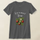 Belos morangos enfeitados com delicadas flores brancas e folhas verdes e peludas. A ilustração encantadora da safra irradia a alegria e a diversão da época de verão. Apresentando as palavras "Summertime." Uma roupa perfeita para uma fuga rural.