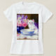 T-Shirt com um lindo gatinho branco vestindo uma fita roxa! Este gatinho fluffy se posiciona próximo a uma tigela azul e um vaso de flores rosa, roxas e brancas. Um presente maravilhoso para amantes de gatos e entusiastas de arte vitorianos!