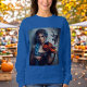 O bonito músico com cabelo azul vibrante Zodiac Taurus toca seu violino antes do símbolo do touro na astrologia.