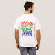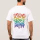 Um design de camiseta vibrante com a frase "Viva sua riqueza." em um estilo de grafite ousado e multicolorido. O texto está rodeado de cinzas e gotas de tinta, criando um visual dinâmico e energético. O design é perfeito para aqueles que querem abraçar uma vida de abundância e prosperidade
