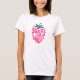 Design apresenta um morango vibrante construído com as palavras "você é tão doce" em uma face divertida e arredondada. A inscrição cor-de-rosa é cuidadosamente curvada e sutilmente distorcida para criar uma silhueta de morango reconhecível, com folhas verdes brilhantes e um caule ligeiramente fino que se estende do topo. Perfeito para uma roupa casual e na moda.