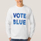 Encorajar as pessoas a votar em democratas liberais nas eleições com uma camiseta branca comprida com as palavras "VOTE AZUL" em uma cor azul-clara para uma design de tipografia moderna. Camisas disponíveis em outros estilos e cores na barra lateral. Mantenha-se quente enquanto bate à porta para sair do voto democrático. Para ver o design Vote Blue em outros itens, clique no link de coleta "Artes Rocklawn" abaixo.