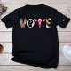 Faça uma declaração poderosa com esta Camisa "Vote", projetada para inspirar ação e defender causas importantes. Cada letra da palavra "VOTE" apresenta símbolos únicos e significativos: um punho representando solidariedade e força, um útero simbolizando os direitos das mulheres e cores vibrantes apoiando o orgulho LGBTQ+. Esta design de revelação é colocada contra um fundo preto elegante, assegurando que a mensagem se sobressai com ousadia. Perfeito para ativistas e apoiadores da igualdade e da justiça, esta camisa combina estilo com um chamado à ação, fazer que é imperativo para aqueles que acreditam no poder de sua voz e de seu voto.
