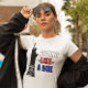 Votando como uma garota escrita em letras azuis, vermelhas, brancas e azuis com uma silhueta de comprimento de cheio do status da liberdade. Disponível em vários tamanhos, cores e estilos.