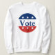 Votem! Use sua camisola para encorajar sua comunidade a sair e votar. O texto azul no centro diz "Votem". Uma faixa azul com três estrelas brancas está acima do texto. Uma faixa vermelha com três estrelas brancas está abaixo do texto.