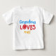 Camisetas Vovó Me Ama, camisetas de manga longa, camisetas raglan, bodysuits, bodysuits de futebol, bodysuits de tutu, bodysuits orgânicos, vestidos sem mangas, vestidos com babados, camisas com babados, chapéus, camisetas escuras, moletons, capuzes, macacões e mais para bebês, crianças e toddlers com um texto azul, vermelho e dourado e um design de coração que diz Vovó Me Ama, ótimo para o menino ou menina da Vovó!