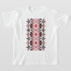 Impressão do bordado nacional ucraniano na camiseta. Ornamento vermelho e preto clássico ucraniano. Guerreiros ucranianos, os lendários kozaks, costumavam vestir tal bordado. Seja corajoso como ucraniano. Fique com a Ucrânia.