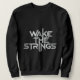 A bold and powerful typography-only design featuring the phrase “Wake The Strings”, inspired by the energy of music, creativity, and self-expression.