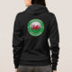 Um design patriótico com uma bandeira 3D galesa arredondada dentro de um anel externo colorido em galês. O texto mais alto é de origem celta e traduz-se como Wales Forever. O texto inferior é o significado inglês do texto superior.