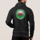 Um design patriótico com uma bandeira 3D galesa arredondada dentro de um anel externo colorido em galês. O texto mais alto é de origem celta e traduz-se como Wales Forever. O texto inferior é o significado inglês do texto superior.