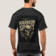 Bold, grunge-style military stencil text: “Warrior Spirit”, with a distressed skull emblem and splattered camo textures behind. Perfect for a rugged, army-inspired statement.
