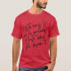 A t-shirt chegou dentro do tempo anunciado e apresentou-se com todas as características que estavam anunciadas. Boa qualidade do tecido e bons acabamentos. O tamanho veio conforme o pedido. Perfeita! Fiz apenas uma pequena personalização no texto, e o mesmo assim veio, bem como todo o restante texto, devidamente impresso e exactamente como estava anunciado na página. Sem falhas!