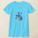 Uma camiseta floral bonito decorada com uma flor da íris selvagem pintada em tons de índigo e azul real com pistas de púrpura sobre fundo azul de ardósia suave. Você pode personalizar o tamanho da imagem e a cor da t-shirt para o ajustado das suas necessidades.