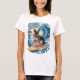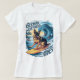 Um German shepherd giro e engraçado anda sobre uma prancha de surfe em uma onda enorme em uma ilha tropical. Wave Rider: Um German shepherd surfando