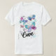 Este design de camiseta delicioso é uma celebração caprichosa do amor, apresentando uma série divertida de borboletas estilizadas em tons vibrantes de rosa, roxo, chato e azul. As asas de cada borboleta são adornadas com bolinhas, listras e corações lúdicos, acrescentando um toque de capricho à design. A palavra "LOVE" é exibida em uma fonte em estilo manuscrito e em negrito, adicionando um toque de calor e afeto ao design. A paleta de cores é brilhante e alegre, evocando uma sensação de alegria e brincadeira.