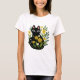 Camiseta Whimsical Black Cat with Yellow Flowers
