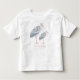 Uma camiseta branca com duas cinza com uma design de arte folclórica embelezada em suas asas em marinho, cinza, vermelha e laranja. Abaixo das cegonhas está escrito "Irmã Grande" em texto azul de cinza. Esta seria uma camisa excelente para uma criança vestir anunciar que um novo bebê está a caminho!