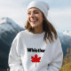 Mostra a palavra "Assobiador" em preto sobre uma folha vermelha de um mapa canadense. Whistler é um destino popular no inverno para canadenses, americanos e viajantes globais para esportes. Legal souvenir para visitantes, turistas, esquiadores, snowboarders, caminhoneiros, caminhoneiros e amantes da natureza para as montanhas Rocky a nordeste de Vancouver, Colúmbia Britânica.