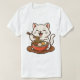 This adorable vector design features a happy white cat enjoying a bowl of ramen with chopsticks, sitting cutely on a wooden table. With charming cartoon style, rich colors, and intricate ramen details like soft-boiled egg, narutomaki, beef slices, and green onions, this artwork is perfect for noodle lovers, cat enthusiasts, and kawaii culture fans. Ideal for t-shirts, stickers, tote bags, and more. Show off your love for Japanese food and cute animals with this delightful ramen cat design!