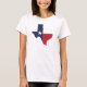 A bandeira do Texas mapeia o T-Shirt branco das design mulheres. Esta design apresenta a forma do mapa do Texas que está preenchida com a bandeira do Texas. Vista esta camiseta de amor do estado para mostrar que você é patriótico e orgulhoso de ser do Texas.