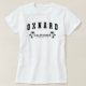A T-Shirt feminina de Oxnard para mostrar que se orgulha de ser desta bela cidade. Este design de T-Shirt apresenta "Oxnard" em uma fonte do tipo em laboratório com "California" e "Ouro State" em fontes de título na moda com palmeiras de ambos os lados.
