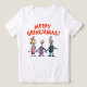 This heartwarming illustration captures the true meaning of Christmas! It features three colorful Whos of Whoville standing together, holding hands, and smiling with their eyes closed, looking like they are happily singing or swaying. They are dressed in unique, whimsical Whoville outfits (pink fringe, purple zigzag, blue stripes). Arching cheerfully above them in bold red text is the phrase: "MERRY GRINCHMAS!" This graphic perfectly embodies the communal and sweet spirit of the holidays!