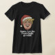 This fun Christmas design features a cheerful Santa-style cartoon character delivering a playful call for holiday peace.