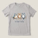 3 Corujas Sábias na frente e atrás desta camisa. Coruja Life Cita. Blues e browns. Design simples,