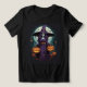 The surrounding scene is filled with gnarled trees, flying bats, and glowing pumpkins, creating a rich and immersive Halloween atmosphere. With its high contrast between the dark background and the illuminated moon and pumpkins, this piece is visually striking and perfect for seasonal merchandise.