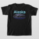 Uma lua de inverno, uma mochila na caça. A leitura de texto "Alaska" em azul e branco brilhantes também é exibida.