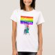 Gay de mulher com um sinal colorido LGBT que tem as palavras "Love Wins". Há duas mulheres ilustradas na árvore também. Obrigados para Hungryjpeg e Creative Fabrica para alguns dos elementos do design.