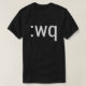 Um design engraçado para geeks e nerd do computador que uso Vi ou Vim escrever o código e o texto. Mostra uma maneira de retirar o Vim datilografando ": wq" no modo de comando para salvar (para escrever) o arquivo e para retirar o editor (parado). Este é conhecimento essencial do cabouqueiro, a menos que você quiser sempre usar seu editor de texto para gerar cordas aleatórias. Mostre fora seu editor de texto favorito, que não é emacs, ou presente ele a um amigo que ame este programa poderoso.