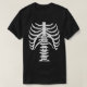 Um vislumbre do que é a dentro do seu peito nesta camiseta falso de raio-x, com fundo escuro e ossos brancos no peito mostrando ribárie e ossos da coluna vertebral. Uma fantasia excelente de halloween ou uma camiseta brincadeira divertida para vestir pela cidade.