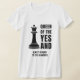 T-shirt divertida IMPROV com TEXTO PERSONALIZÁVEL. Ideal para pessoas que adoram teatro improvisado ou que são comediantes. Design apresenta rainha do xadrez e tipografia ousada que lê QUEEN OF THE YES E. "Sim E" é a principal regra de improviso. Há um TEXTO PERSONALIZÁVEL no fundo que diz SEMPRE ESTAR PRONTO PARA DAR UMA RESPOSTA, que se baseia num verso Bíblia cristão de 1 Peter 3:15. Também disponível em preto.