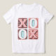 Um design de inspiração vintage com letras em bloco negrito 'XOX' e 'OX' em matizes cor-de-rosa angustiados com sotaques de cor clara escarnecidos. Enquadrada por formas quadradas, a design inclui pequenos corações e elementos decorativos para uma estética alegre e romântica perfeita para o Dia de os namorados