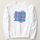 A imagem apresenta um design vibrante e lúdico com o texto repetido "XOXO" em uma fonte em negrito, no estilo de uma bolha. As letras são grossas, arredondadas e preenchidas com uma cor azul profunda, esboçada em branco, e têm um ligeiro efeito de sombra. Por trás do texto está uma forma cardíaca estilizada e em camadas, rosa e magenta, adicionando uma estética dinâmica, romântica e divertida. A composição geral emite um toque retrô, pop, com uma vibração enérgica, tipo grafite.
