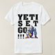 A design de camiseta apresenta uma ilustração caprichosa, mas detalhada, de um Yeti, caracterizada pela sua grande e peluda aparência, com uma construção muscular exagerada, acrescentando ao aspecto humorístico. Este Yeti está vestido com um uniforme colorido, cheio de calções, um topo de tanque, e calçados correndo, dando-lhe um olhar esportivo e pronto para correr. A expressão facial do Yeti transmite determinação e entusiasmo, como se estivesse nos blocos iniciais de uma corrida. Atrás do Yeti, em uma fonte grande, ousada e divertida, estão as palavras "Yeti, Set, Go!" Estas palavras substituem a frase "Pronto, Preparar, Ir!" O fundo das palavras se mistura perfeitamente com o design geral, adicionando um elemento dinâmico e divertido à camisa. O design é feito para evocar risos e motivações, apelando para aqueles que amam esportes, humor e criaturas míticas.