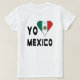 A camiseta feminina, com design em ambos os lados, usa uma bandeira mexicana em forma de coração em vez da palavra LOVE, ou AMO. Design lê YO AMO MÉXICO, ou adoro MÉXICO. A bandeira é verde, branca e vermelha com uma águia no centro. Excelente de reagrupamento familiar e Cinco de Mayo. presente de excelente para qualquer ocasião.