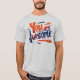 Qualidade média do tecido e impressão. Menos boa pelo atraso verificado. O L americano é muito grande em comparação com o L europeu!